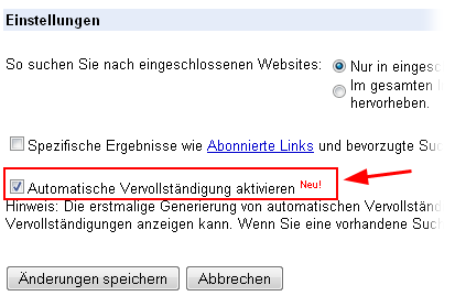 Wichtig ist noch der Hinweis, dass es mehrere Stunden dauern kann, bis die automatische Vervollständigung dann wirklich auf der Webseite erscheint. Google muss hierfür einen Index erstellen, was nur in bestimmten Intervallen geschieht. In unseren Tests hat es bei einigen Domains bis zu einem Tag gedauert, bis die automatische Vervollständigung wirklich funktionierte.