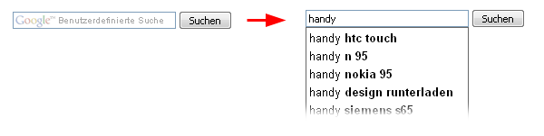 Seit kurzem ermöglicht Google die automatische Vervollständigung von Suchbegriffen schon beim Eintippen auch für die AdSense-Suchfelder. Diese Funktion gab es bisher schon beim Suchfeld auf der Google-Startseite. Nun können auch die AdSense-Publisher davon profitieren, denn dieses neue Feature verspricht höhere Einnahmen, weil die Besucher dadurch die Suchfunktion häufiger nutzen, weil sie viel einfacher alternative Suchbegriffe finden können. Das folgende Bild zeigt die automatische Vervollständigung in Aktion: