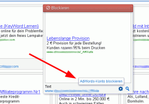 Wer auf seiner Webseite ähnliche Probleme mit Wort-Doppeldeutigkeiten oder unpassenden Anzeigen hat, kann nun ähnlich vorgehen (sofern es eine passende Unterkategorie gibt, die man blockieren kann). Ist dies nicht der Fall, gibt es bei AdSense nach wie vor die Möglichkeit, beliebige Anzeigen-URLs komplett zu blockieren. Doch damit nicht genug, es ist im neuen Überprüfungszentrum nun auch möglich, gezielt einzelne AdWords-Konten zu blockieren. Dann werden alle Anzeigen und Kampagnen, die mit einem bestimmten AdWords-Konto verknüpft sind, nicht mehr eingeblendet.