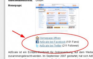 Des Weiteren wurden die Vermarkter-Profile in den letzten Tagen mit einigen weiteren Informationen angereichert. Es werden nun bei allen Firmen Links zu den Facebook-Fanseiten und Twitter-Accounts angezeigt, inklusive jederzeit aktuellem Counter der Fans bzw. Follower. Dadurch kann man sich noch schneller einen Überblick verschaffen, wie beliebt bzw. kommunikativ ein bestimmter Online-Vermarkter ist.